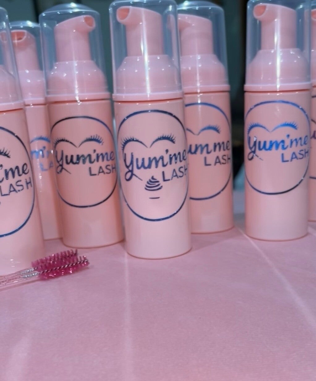 To maintain your lash extensions, clean around your eyes gently using a damp, warm washcloth. If you notice any buildup or "crud," we highly recommend using Yum'me Lash's specially formulated lash shampoo. It's wonderful for cleaning your eyes without any burning sensation, ensuring your lashes stay clean and beautiful.